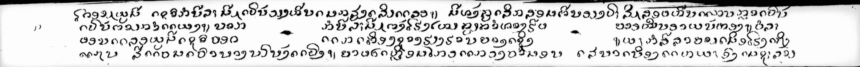 ๚๏ บัดนี้ข้าจักวันทาไหว้มหาคุนองปละเสิด ขอให้บุนซ่อยค้ำสะถานหมั้นหมื่นปลีแดทอนฯ แม้นว่าผมเกดเกล้าถวายราดบูชา